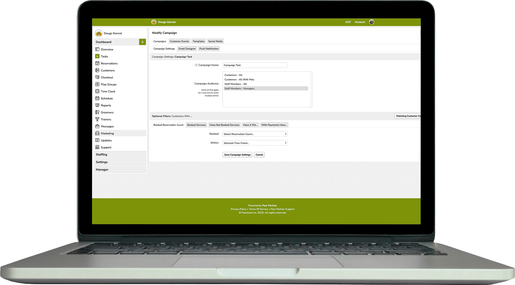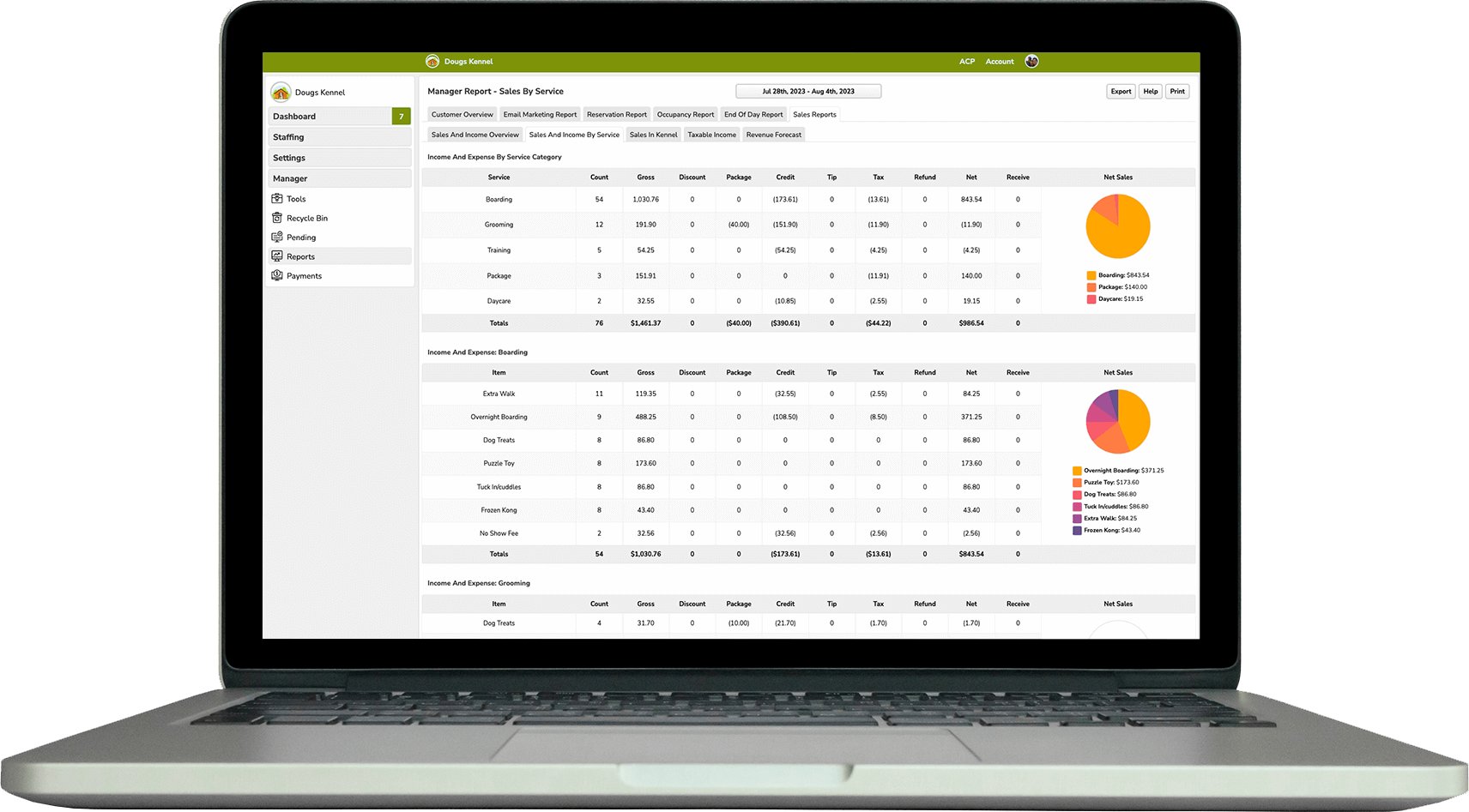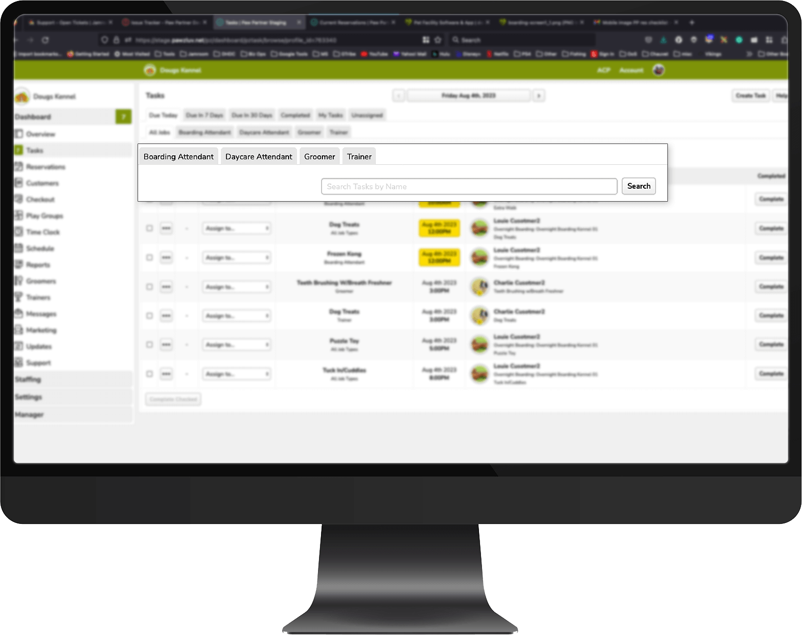 Cover your daily chores by assigning specific tasks to staff members and tracking when they’re completed. You’re always in control with the option to set staff permissions, including access to reports and ability to view or message client information.