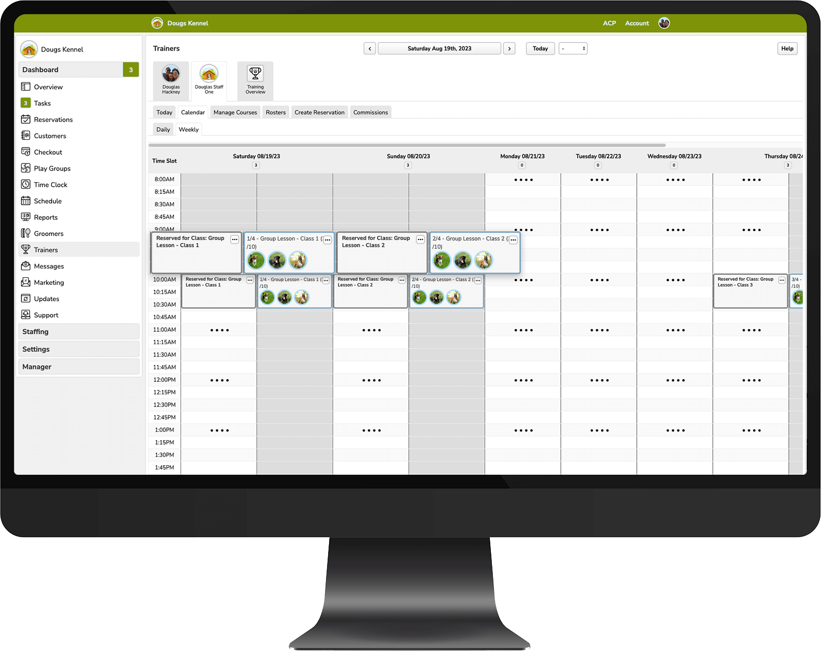Your trainer’s calendar details your class roster for the day, plus staff schedules, so you can see the whole picture at once.